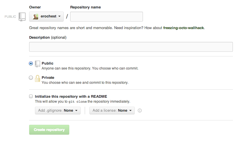 Create a new repository on Github.