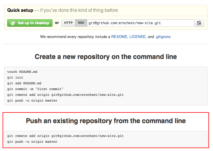 $ git remote add origin git@github.com:erochest/new-site.git